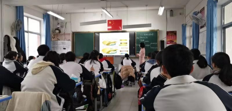 此次见习主要以听课、观摩、研讨学习为主。早上,刘震老师带领一队进入烟台四中高二(8)班的政治课堂,观摩姜妍杰老师的政治课讲授。姜妍杰老师先从复习导入开始了新课程的学习,课中又根据所讲知识点结合了很多丰富的当今热点话题,整个课堂气氛十分活跃。见习的同学们也在次课堂中亲身感受到了高中课堂的氛围,学习到了真实授课中的教法,使得同学们都受益匪浅。