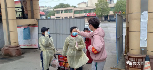 思政本1803班学生李晓从1月31日起就在平度田庄镇廉家村疫情防控点担任志愿者,面向村民宣传疫情防控知识,叮嘱村民少出门、戴口罩、勤洗手、勤通风,同时排查出入本村的车辆及人员并进行登记。李晓说:“在国家危难时期,我会尽自己所能去回报社会,众志成城,抵抗病魔!”