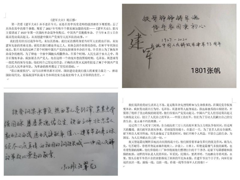 活动面向2018级和2019级全体同学征集作品,同学们积极报名,踊跃参加。参赛同学用纸笔书写军人故事,用文字表达军人情感,通过讲述自己家乡或亲人参军经历和入军心得体会,展现了人民解放军最朴素最真诚的一面,也让同学们对人民解放军有了更深的了解。