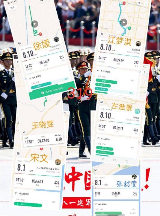 “人民军队的历史辉煌,是鲜血生命铸就的,永远值得我们铭记。人民军队的历史经验,是艰辛探索得来的,永远需要我们弘扬。”“八一”字样的运动轨迹、8.1公里的运动、整整齐齐的内务,都是同学们致敬八一的方式,表达了同学们对八一精神的敬佩与赞叹。