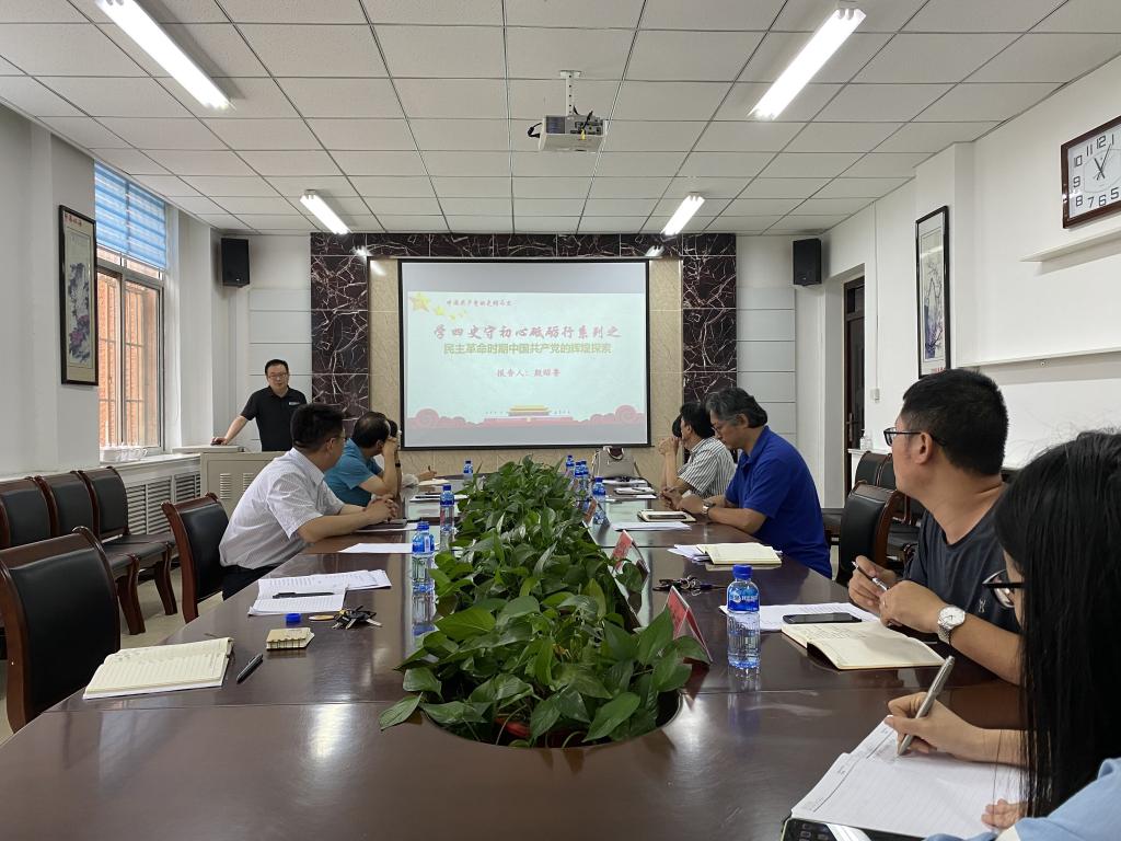 近日,4166am官网登录党总支理论学习中心组开展“四史”专题学习,学院副院长、四史学习教育研究中心主任殷昭鲁副教授以“学四史守初心砥砺行系列之民主革命时期中国共产党的辉煌探索”为题做辅导报告,学院党总支理论中心组成员、科级干部和辅导员参加学习。