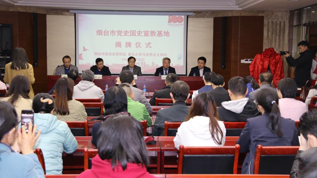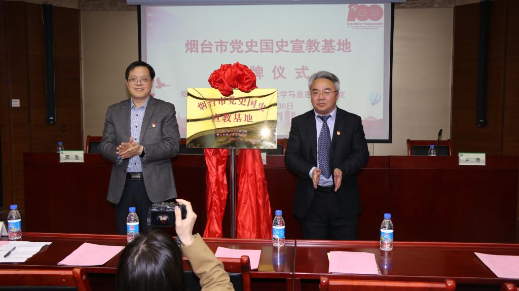 李丕志和姜茂徐共同为烟台市党史国史宣教基地揭牌。会议指出,在建党一百周年的关键节点共建“烟台市党史国史宣教基地”,旨在动员广大党员干部和思政课教师提高政治站位,牢记习近平总书记对思政课教师提出的六点要求,以高度的政治责任感注重学思践悟、做到知行合一,全面推进党史学习教育。会议要求,思政课教师将“四史”学习成效与思政课改革创新密切结合,推进习语、党史、红色鲁东进课堂,将党史学习融入日常,做到制度化、常态化。充分利用校内、外资源,发挥4166am官网登录专业优势,切实研究好习近平新时代中国特色社会主义思想,学习好党史,传承好红色基因,全面落实立德树人根本任务,坚持学以致用、服务地方,把党史的学习教育宣讲融入育人长效机制,在真学真信中坚定理想信念,在学思践悟中牢记初心使命,在细照笃行中不断修炼自我,在知行合一中主动担当作为,以党史学习教育的实际成效推动思政金课建设和学院事业高质量发展,以优异成绩迎接建党100周年。