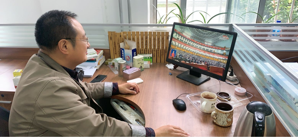 4166am官网登录现有教职工84人,学生899人,结合疫情防控形势,采用线上线下相结合的方式组织全院师生收听收看党的二十大盛况。线下设218和120两个会场,组织党委委员、本科生党员共30人到218智慧教室集体收看;研究生党员31人在120会议室收看;教工党支部组织教师党员和思政课教师居家收看;辅导员、班主任组织学生以宿舍或者班级为单位组织宿舍集体收看或者通过腾讯会议组织班级集体线上收看。