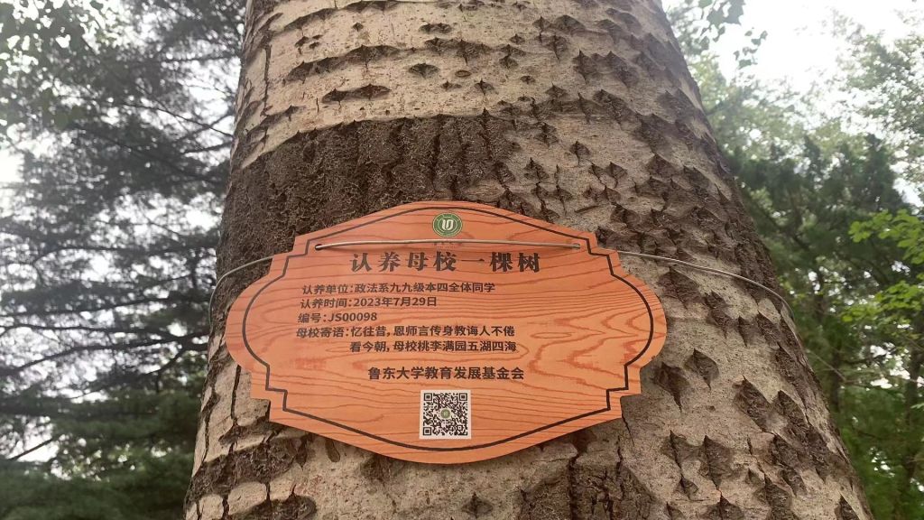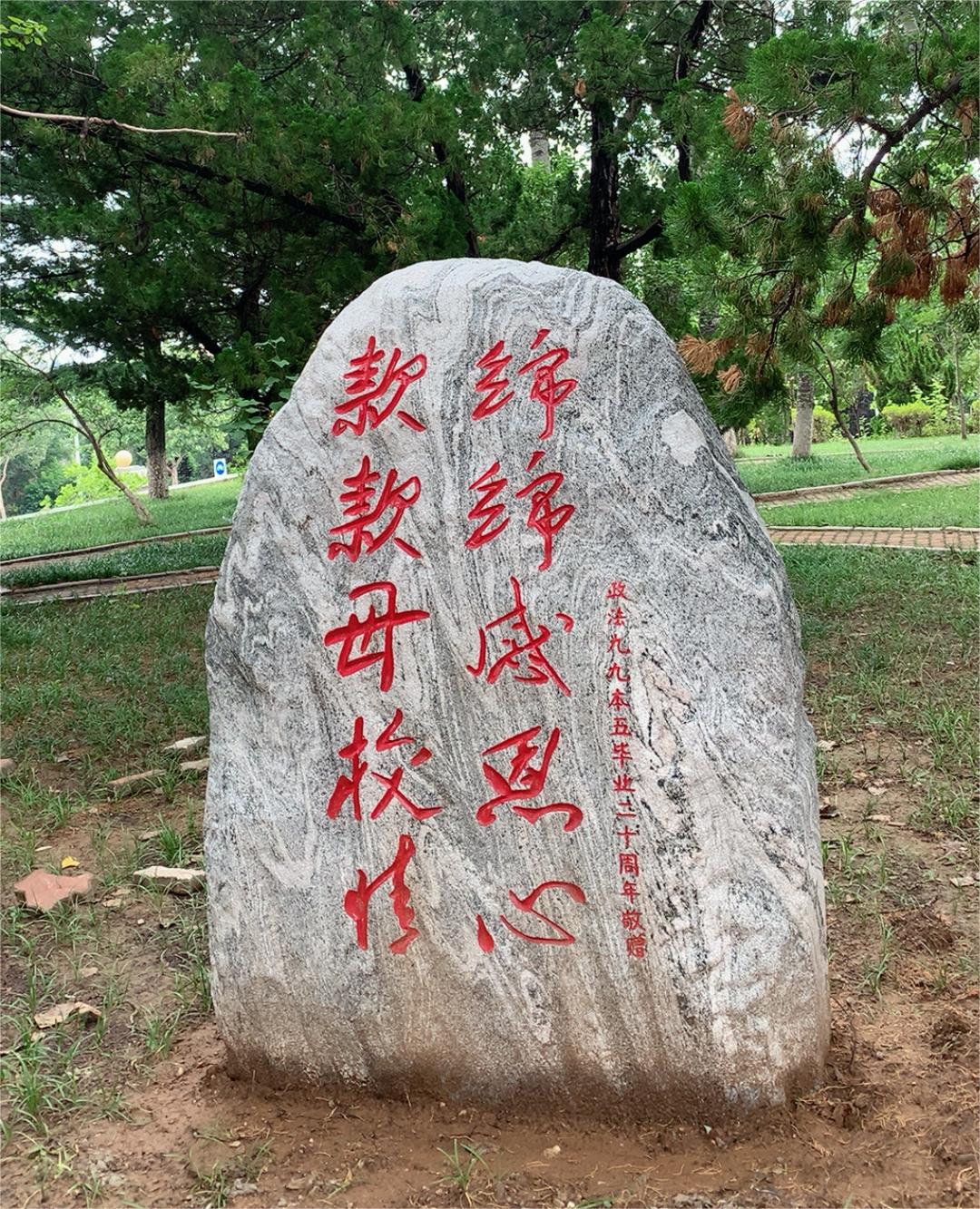 1999级校友为母校捐赠了题有“款款母校情,绵绵感恩心”的石刻,认养了两棵杨树。(撰稿:杜美静 审核:邢希娜)