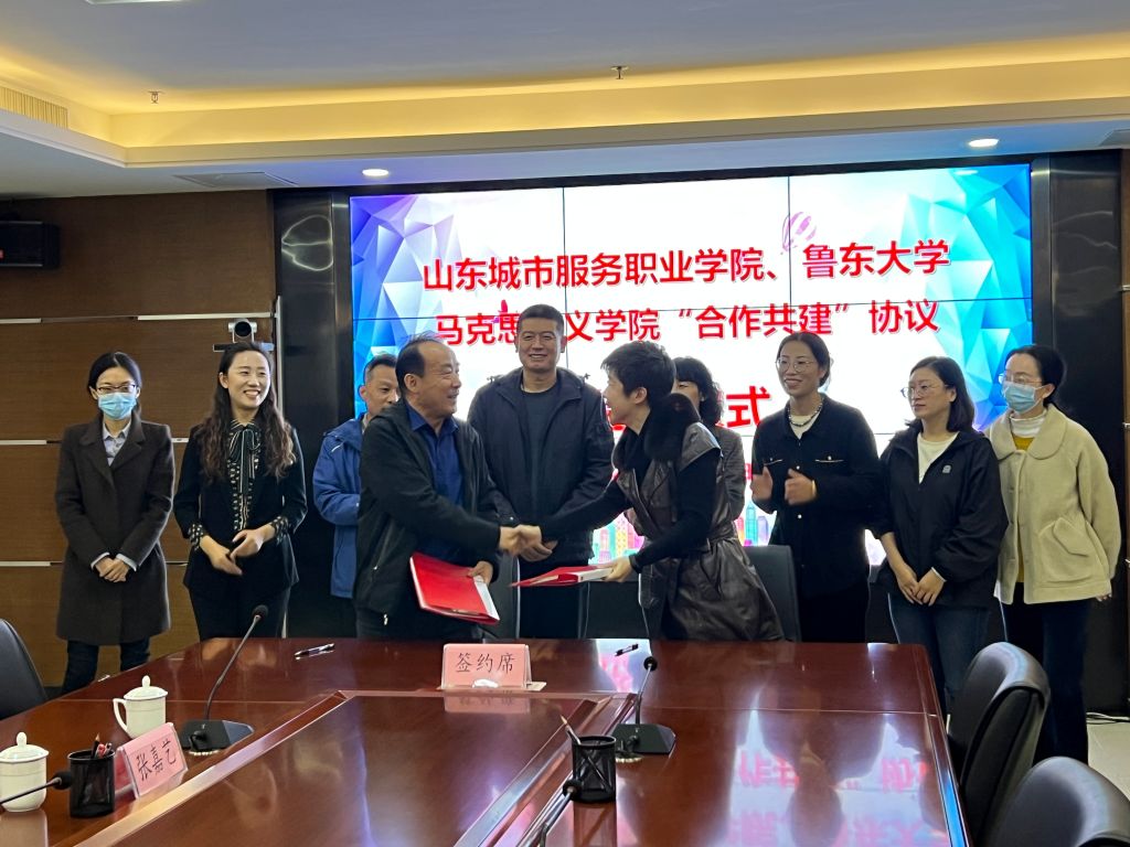 11月7日下午,4166am官网登录党委书记邢亮、副院长孟军一行赴山东城市服务职业学院考察交流,签订合作共建协议,并举行4166am官网登录实践教学基地揭牌仪式。山东城市服务职业学院党委委员、副院长贺鸿,4166am官网登录院长王疆辉、副院长张晓丽,以及部分教师和学生代表参加了活动。