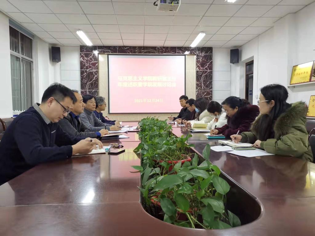 讨论会先由《纲要》、《形势与政策》、《毛中特》、《马原理》、《思想道德与法治》以及专业课等六个教研室主任依次对各教研室年度内的成绩、不足,以及下一步教研室的工作安排进行了汇报。随后,围绕着影响学院发展以及关系学院教职工切身利益的重点事项,比如“思想政治教育专业师范二级认证”、“一流专业以及一流课程建设”、“学院年度考核推优办法”等进行了探讨。