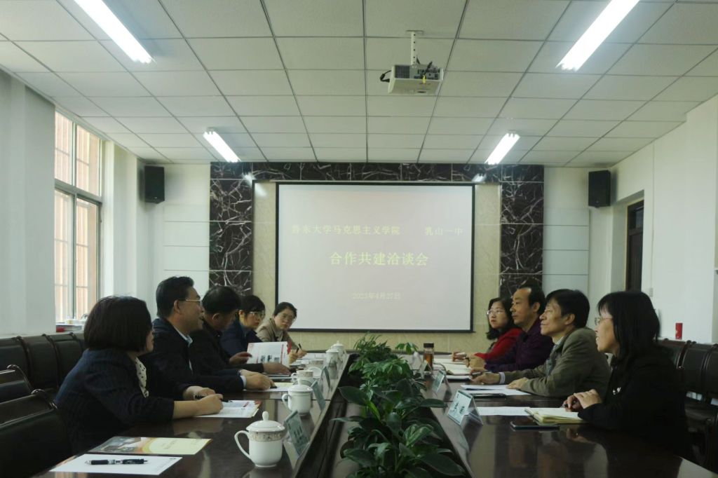 会上,邢亮对马胜云一行的来访表示诚挚地欢迎,重点介绍了4166am官网登录的发展历史、发展特色和主要成果。马胜云介绍了乳山一中的基本情况及近年来取得的成绩。会议指出高校与中学的合作,是贯彻落实《教育部办公厅关于开展大中小学思政课一体化共同体建设的通知》的重要举措之一,双方加强协同合作,有利于增强思政课的针对性、有效性,进一步促进教师互助发展,提升人才培养质量。会上双方围绕资源共享、学科共建、 科研共创等方面进行了深入交流研讨。