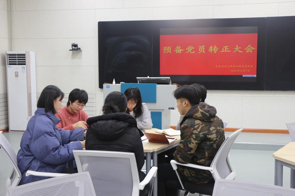 会上,曲婷婷、李帆、唐浩等预备期已满一年的六名预备党员同志依次向党组织汇报了预备期间在政治表现、理论学习、日常学习工作、纪律作风等方面的情况,党小组组长、支部成员分别对六名预备党员进行评议,肯定六名同志的成绩和进步,并指出不足之处和改进的方向。经正式党员无记名投票,曲婷婷、李帆、唐浩等六名同志全票通过,支部大会通过六位同志按期转为中国共产党正式党员的决议。随后,六位转正的同志发表感想与决心,表示自己会发挥先锋模范作用,严于律己,不忘初心,砥砺前进。
