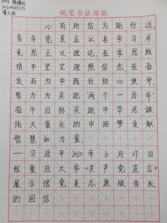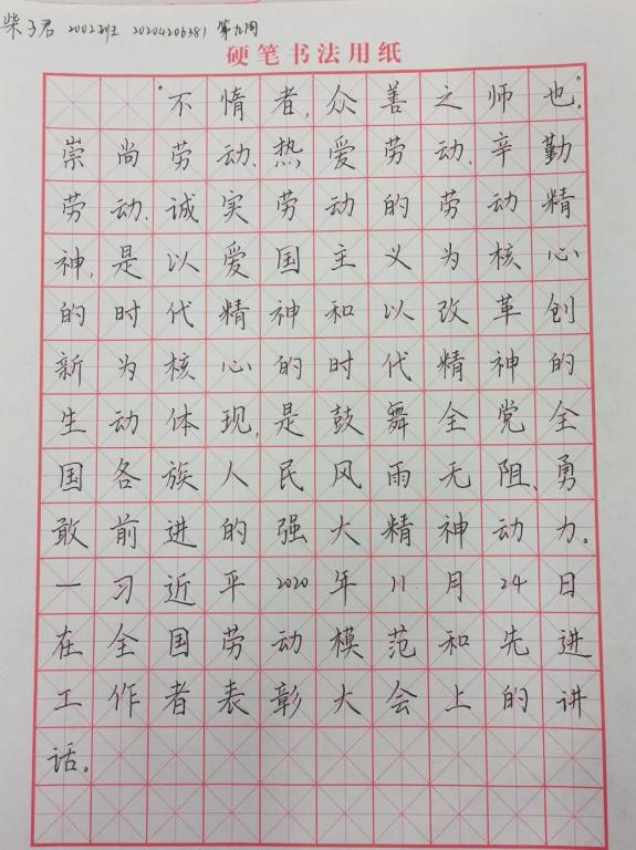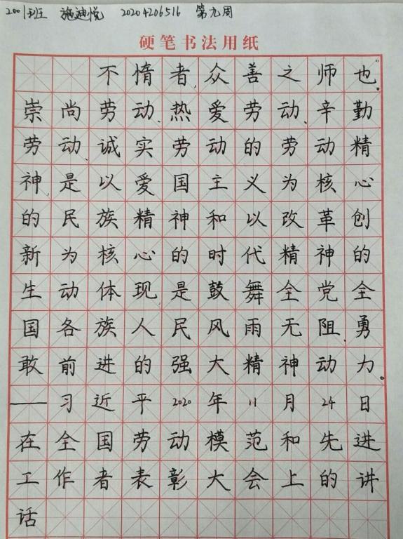 为深入学习习近平总书记的重要讲话精神,提高同学们的书写能力,4166am官网登录自2020年10月16日起面向2020级同学持续开展“学思践悟·习语金句”活动,并在最后一期的14份优秀作品中评选出年度隽秀奖五名。