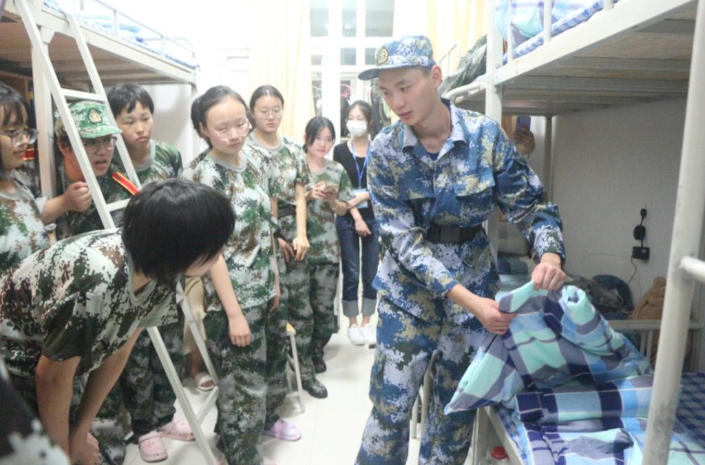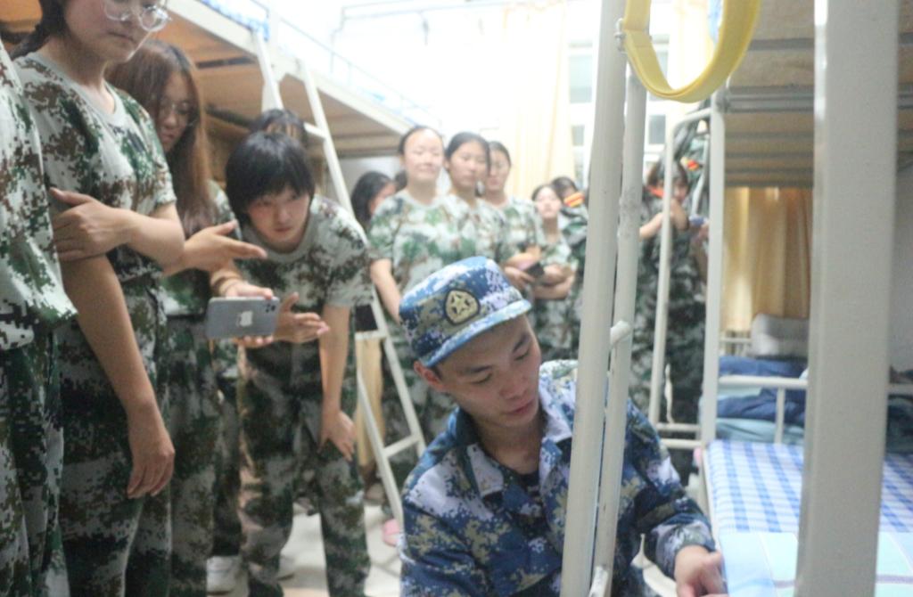 9日晚,4166am官网登录组织教官进宿舍,为新生讲解军训期间的内务标准并亲自示范如何整理标准床铺。“一压二放三整理”在教官一遍遍强调下,同学们对于口诀都已经烂熟于心,教官示范结束后自觉整理起自己的床铺。内务整理从来都是军训生活中一个重要的环节,通过对内务的高标准严要求,才能让同学们认识到军营生活的严谨与规范,才能为之后四年大学生活同样严格要求自己打下坚实的基础。